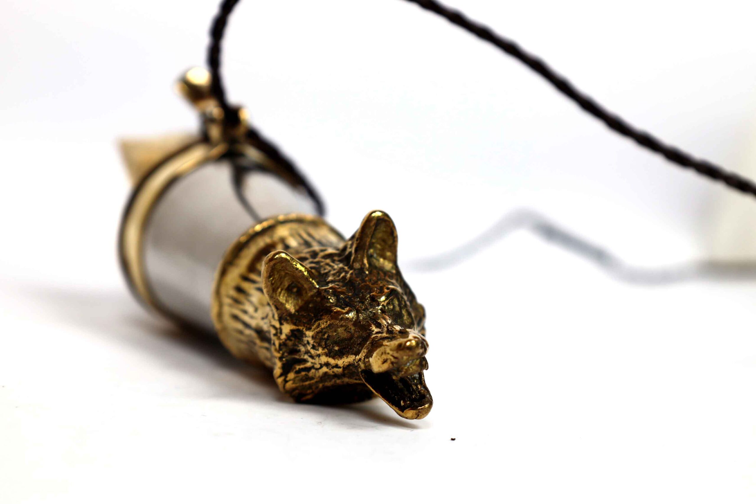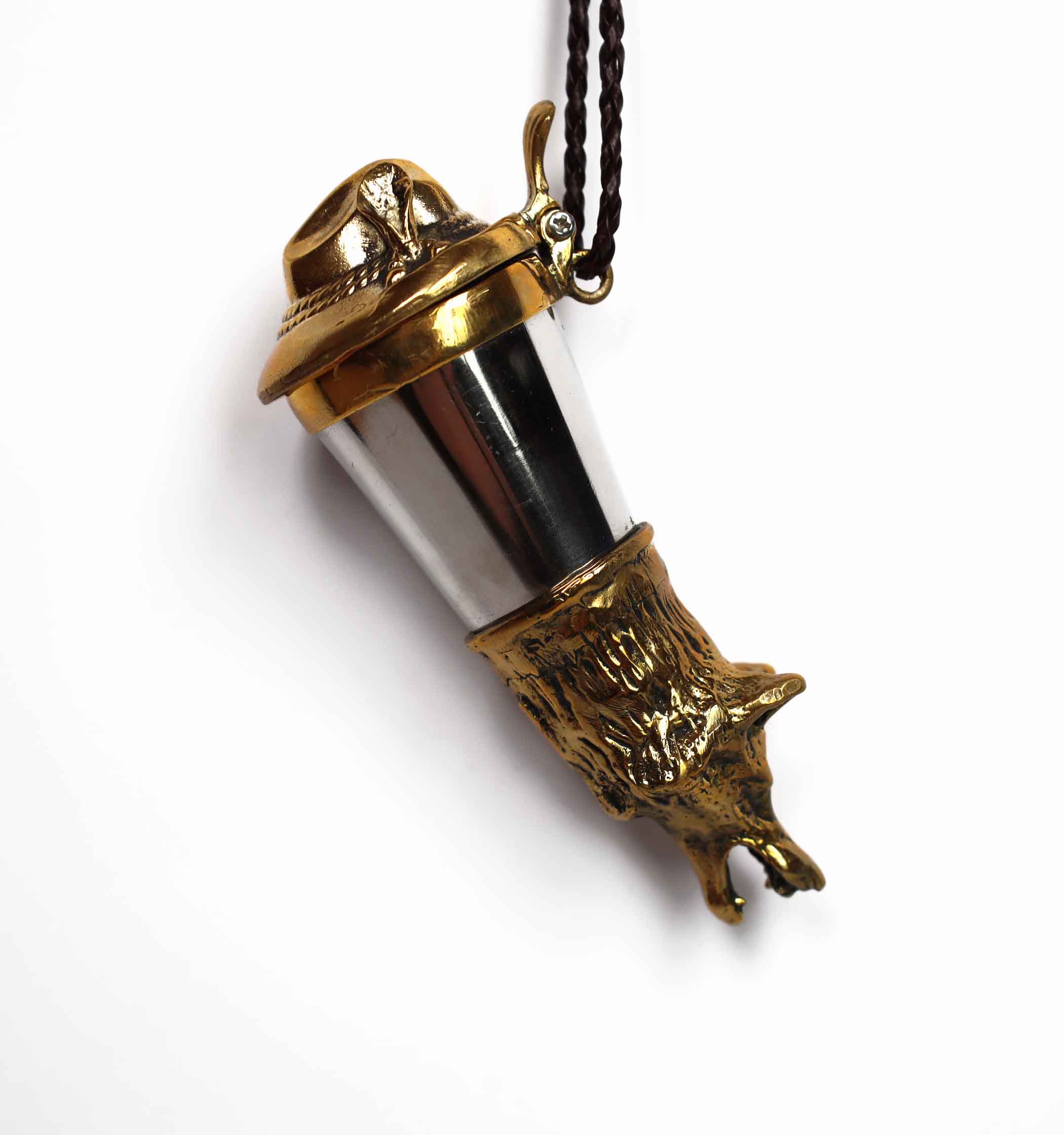 Wyjątkowa kulawka wykonana z mosiądzu oraz stali nierdzewnej kwasoodpornej, inspirowana klimatem leśnych wędrówek, dzikiej przyrody i tradycyjnych spotkań przy ognisku. Wieczko zdobi motyw kapelusza, przywołujący ducha myśliwskich zwyczajów i swobodnej biesiady, natomiast róg wieńczy figura warczącego lisa – symbolu sprytu, czujności i nieokiełznanej natury.