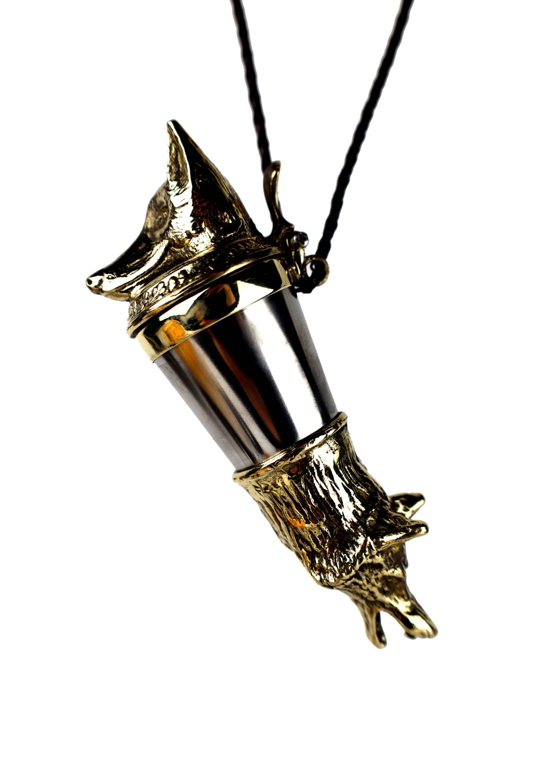 Stylowa kulawka wykonana z wysokiej jakości mosiądzu oraz stali nierdzewnej kwasoodpornej, łącząca trwałość z wyjątkowym designem. Wieczko zdobi głowa lisa oraz róg ozdobiony detalicznie wykonanym łbem lisa, który podkreśla unikalny styl produktu. Całość odlewana ręcznie metodą na wosk tracony. Każdy egzemplarz może się od siebie różnić.