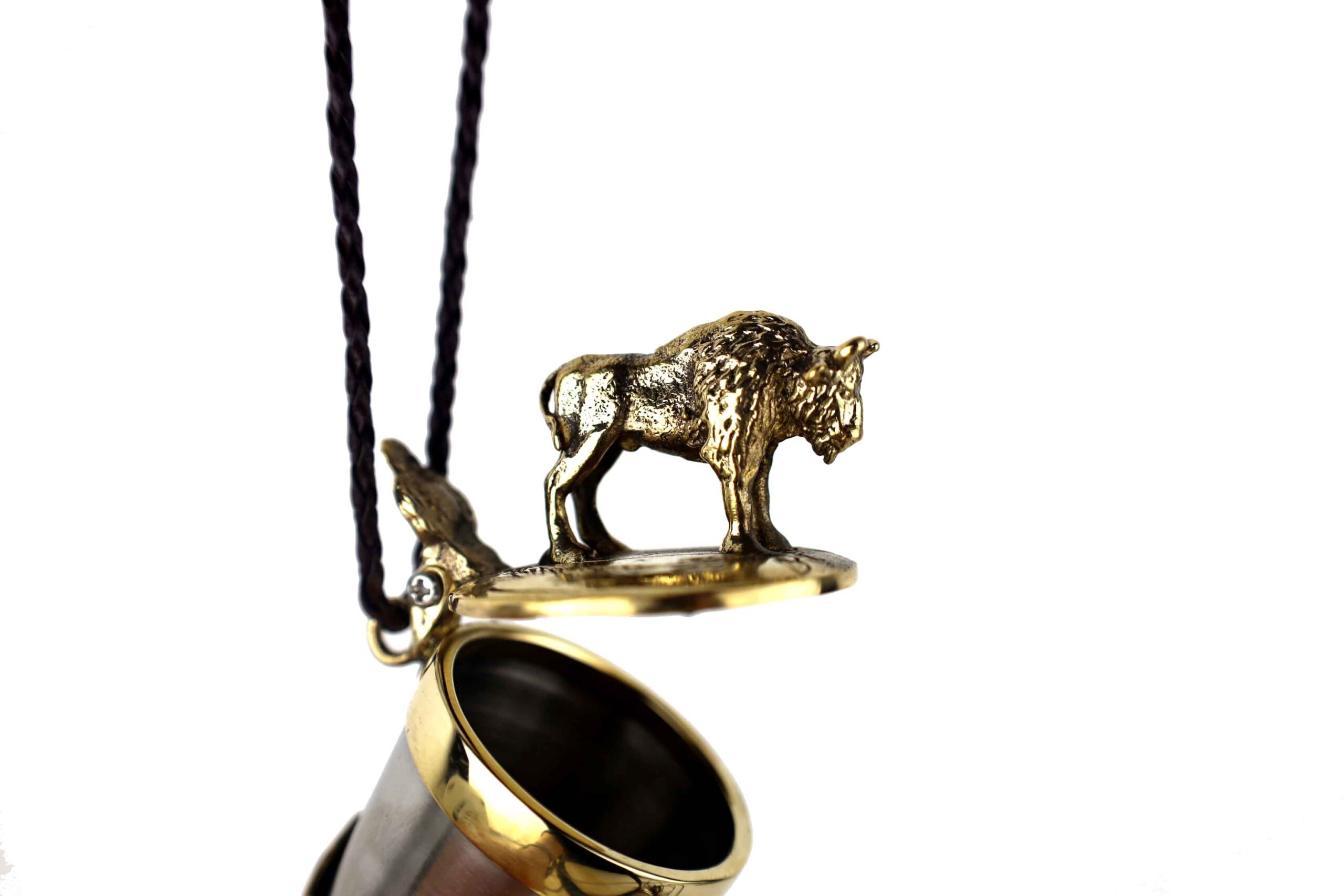 Wyjątkowa kulawka wykonana z wysokiej jakości mosiądzu oraz stali nierdzewnej kwasoodpornej, stworzona z myślą o myśliwych i pasjonatach dzikiej przyrody, którzy cenią siłę tradycji i wyraziste symbole natury. Wieczko zdobi starannie odwzorowana sylwetka żubra – jednego z najbardziej majestatycznych zwierząt europejskich lasów, symbolizującego potęgę, wytrwałość i niezależność. Róg kulawki zwieńczony jest detalicznie wykonanym łbem żubra, który nadaje całości charakteru i podkreśla jej wyjątkowy, łowiecki styl.